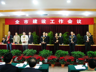 会上,市建设局局长王德声全面总结回顾了去年全市建设工作情况,全市建设事业呈现加快发展、协调发展、可持续发展的良好态势。一是城乡建设对全市经济社会发展的作用明显增强。全力推进市政基础设施项目建设,全年完成市政投资3.5亿元,新建道路面积近50万平方米,新筑下水道4.1万米,新增绿化面积13.8万平方米,建设规模和投资额均创近十年之最。旧城改造稳步推进,全年旧城改造竣工新楼55幢,建筑面积30.5万平方米,回迁居民259户,完成6个片点改造。二是建筑业的支柱产业地位明显提高。全年完成施工产值168.7亿元,比增15.5%,建安营业税6.98亿元,转移外税1.6亿元,建筑业在我市的支柱产业地位日益突出;“走出去”步伐加大,完成外出施工产值108.2亿元,占施工总产值64 %。三是工程质量安全和市场监管力度明显加大。三是工程质量安全和市场监管力度明显加大。继续强化工程质量安全管理,全年创部优工程4项,省优工程38项,市优工程25项;建安集团承建的广州富力国际公寓工程、广东建华装饰参建的首都机场航站楼、停车场及交通中心工程获“鲁班奖”,汕潮公司承建的中山万科城市风景花园工程获“詹天佑奖”。四是节能减排和科技创新取得明显进展。着力推进建筑节能工作,科技创新和人才建设取得新进展。五是支援抗震救灾和灾后恢复重建工作取得明显成效。全市建设行业捐款超过1000万元,捐建活动板房400多套。充分发挥公共服务设施援建专责小组组长单位的协调作用,高质量高效率推进对口援建工作。六是精神文明建设和党风廉政建设明显加强。市建设局被评为“全市创建好班子先进单位”和“广东省建设系统精神文明建设示范单位”。