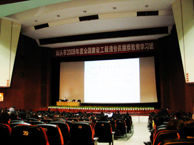 浏览次数:1896为提高我市建设工程造价员的业务水平,更好地掌握并贯彻执行住房和城乡建设部批准发布新的国家标准《建设工程工程量清单计价规范》(GB50500-2008),根据省建设工程造价总站的工作部署和省工程造价协会的通知要求,市造价站和市建筑业协会于2009年2月7日在鮀岛影剧院举办全市建设工程造价员继续教育学习班,参加学习班学习的造价员有1千多人。市造价站及市建筑业协会对办好这次学习班十分重视,做了大量准备工作,还专门邀请了中国建设工程造价管理协会专家委员会主任委员、国家2008年《建设工程工程量清单计价规范》主编、广东省建设工程造价管理站赖铭华科长和中国建设工程造价管理协会专家委员会委员、广东省工程造价协会副会长高峰先生等专家来汕讲学。
