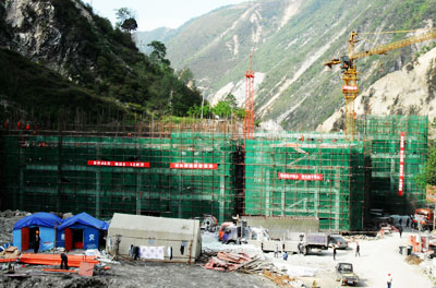 目前,草坡乡公共服务设施工程建设正快速推进,教工宿舍楼将于5月4日提前封顶,学生宿舍楼将于5月8日提前封顶,中心小学所有建筑主体工程按计划在“5.12”之前全部封顶的目标可望顺利实现。