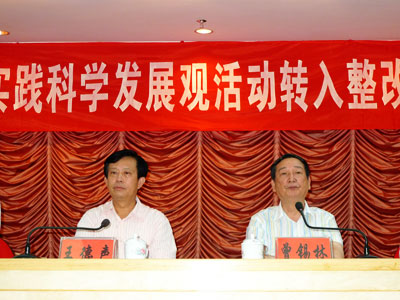 王德声局长充分肯定局机关和下属各单位学习实践活动分析检查阶段取得的明显成效,要求再接再厉,加强领导,把学习实践活动抓得更紧、更实、更有成效,要通过抓整改,抓落实,推动重点工程建设、建筑业“双转移” 战略全面实施、行业监管工作、汶川草坡乡援建工作、机关作风优化等五项工作取得新进展。