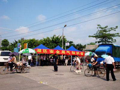 为全面贯彻落实“安全生产年”的各项工作任务,在“安全生产月”期间,近日,市、龙湖区两级建设部门牵头德源、龙鹏、龙华公司在鸥汀市场举办“燃气安全使用知识咨询宣传活动”户外咨询活动,送法律法规、用气知识到村民、用户手中,接受市民用气咨询,答疑市民提出问题,发放安全用气资料等。据统计,现场接受市民咨询超300人次,派发安全用气资料2000多份。