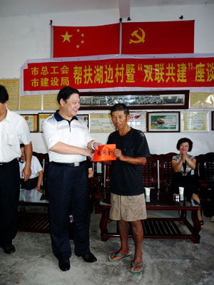 浏览次数:2858按照我局贯彻落实科学发展观活动的部署,结合纪念建党88周年、庆祝建国60周年活动,“七一”前夕的6月29日,我局由局党组副书记、副局长、局深入学习实践科学发展观领导小组副组长兼办公室主任颜廷启同志带队,与驻村单位市总工会一起来到海门镇湖边村,开展一次“双联共建”的主题实践活动。