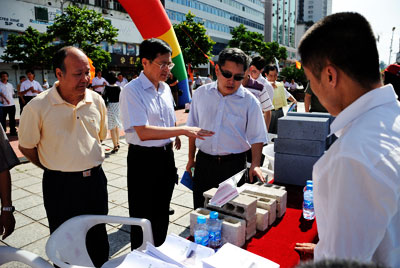 在活动现场,市建设局积极发放建筑节能宣传资料,向群众宣传建筑节能法律、法规以及相关知识,解答建筑节能有关问题。市升建、保源建材、金马、鲁邦建材等4家新型墙体材料企业在活动现场展示了企业最新建筑节能成果及10多种建筑节能新产品、新材料,并接受群众对新型节能新材料、新产品、新技术、新工艺的咨询。现场吸引了众多群众的参与,活动氛围异常热烈,共发放建筑节能各类资料2000多份,解答群众各类提问80多个。