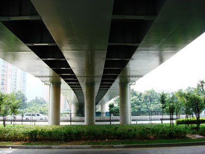 香梅路跨北环路跨线桥工程位于深圳市梅林片区的西部,南接香梅北路,跨北环路,北接现有梅园西一支路。工程施工内容包括跨线桥、香梅北路(部分)、梅园西一支路以及桥梁、道路范围内的新建、改建给水、排水、电力、照明、通信、燃气管道、交通设施和环保、绿化工程。该工程施工单位不但重视工程质量,而且工程施工中十分注意与当地组织及群众的沟通,高度重视环境?;ぃ×考跎偈┕ざ曰肪吃斐傻奈廴竞推苹?,坚持文明施工、绿色环保施工,力争促进企业与环境和谐,受到周围居民和有关部门的一致好评,《深圳特区报》等5家主流新闻媒体先后对此进行报道,是深圳市的“十大民心工程”之一。