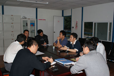 支部书记林岳钿陪同局领导与援建工作组领导连夜召开现场会议,讨论解决施工中遇到的地质问题