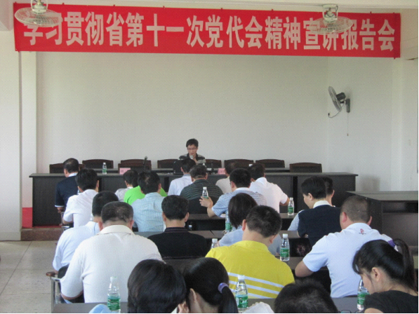 会上,洪智强副主任结合当前国内外形势和省情民意,通过列举大量的事例和引用相关文章,对中共中央政治局委员、省委书记汪洋在省第十一次党代会上的报告精神实质、重大意义、深远影响以及整个报告的特点、重点、亮点等内容进行了生动翔实地讲解,突出重点对省党代会的基本情况、过去五年工作的主要成效和经验总结、我省发展面临的发展形势和总体要求、今后五年的工作部署等方面,较为全面地阐述了省党代会精神。同时结合全区建设系统的实际,提出了要把学习省第十一次党代会精神与推动濠江加速发展结合起来,切实把思想和认识统一到党代会精神上来,为濠江加快推进大部制改革,加快全区经济社会发展 贡献力量。