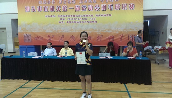浏览次数:167210月14日--15日,市住建系统代表队参加在中国乒协汕头市乒乓球学校举行的市直机关第一届运动会羽毛球女子单打比赛中,赖桂华夺得羽毛球赛女子单打冠军。她在这次比赛中努力拼搏,打出了信心,打出了水平,打出了实力,一路上过关斩将,夺得女子单打第一名,为市住建系统赢得了荣誉,展现了市住建系统干部职工的青春风貌和饱满精神。