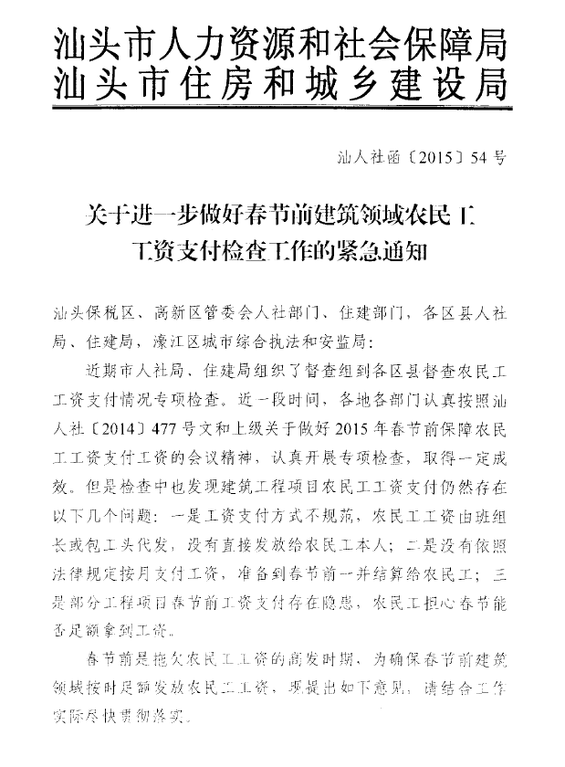 关于进一步做好春节前建筑领域农民工工资支付检查工作的紧急通知