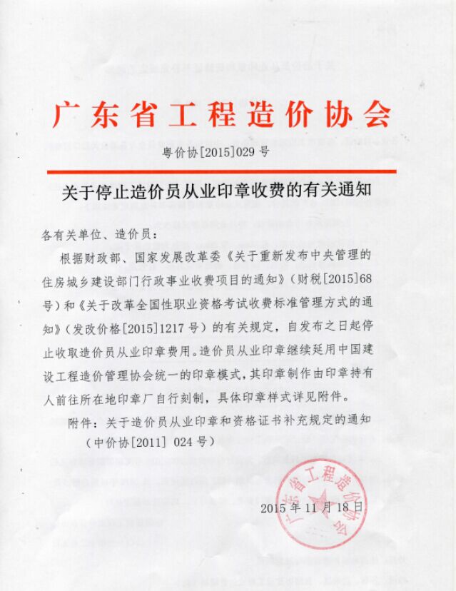 关于停止造价员从业印章收费的有关通知