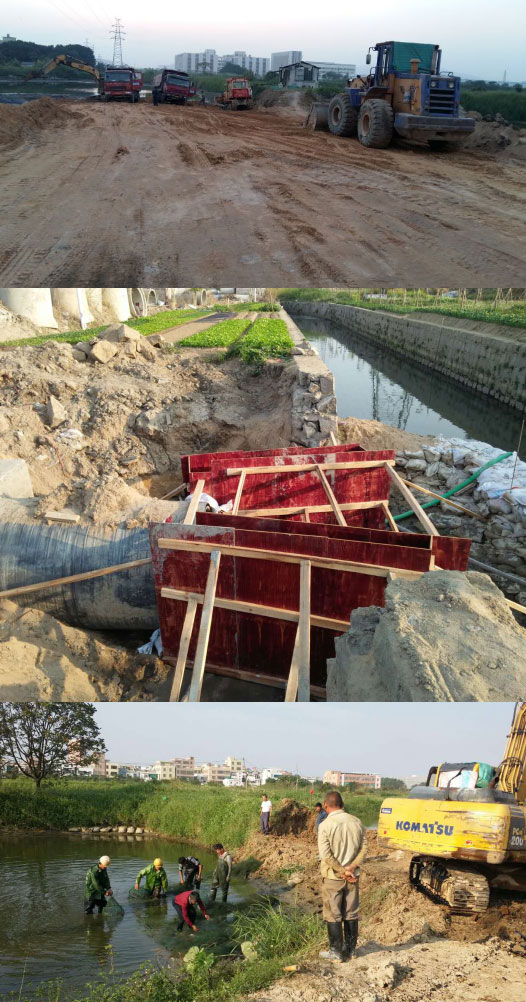 因地质条件特殊,项目实施存在报建审批、测量钻探、水田清表、池塘围堰、淤泥清运换填和路基沉降等诸多不利因素。为如期优质推进道路建设,项目各方积极沟通,因地制宜,突破难关,合力攻坚。目前,已完成池塘清淤、土路基填筑及路基填筑、压实工作。在本月初,施工方开始对符合沉降要求的沿江路~北四直街路段进行下水道施工。此外,我局还积极牵头龙湖区政府、市交通局、万吉工业办和超声研究所,加快对项目施工细节、公交线路等问题沟通协调,力求更好服务企业,全力优化道路出行。