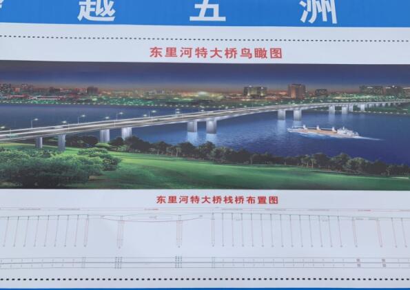 东里河特大桥是汕北大道(凤东路)澄海段最长的一座桥梁,全长1.2公里,其中主跨148米。由于涉及深水作业和大跨度连续梁施工,加上地质条件复杂,施工难度大,风险高,是项目的攻坚重点。项目建设单位集中力量,确保用两个月时间完成水上施工栈桥和施工平台的搭建,为后续主体工程施工创造有利条件。
