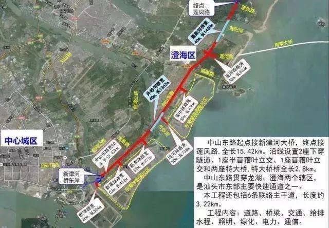 中阳大道(澄海段)自凤翔街道外砂溪中线开始至莲下镇莲凤路止,工程设计路线总长度约10.28公里,控制宽度90米,用地面积约1401亩,跨凤翔街道、莲下镇2个行政辖区,项目用地范围涉及16个土地权属单位。