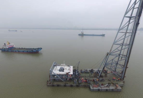 “主墩平台的开打标志着我们南北两岸同时开始施工,也标志着水上和岸上施工同步进行,牛田洋大桥22号主墩是我们整个牛快项目的一个控制性工程,它的主塔高度180多米,所以它的工期非常长。要按期完成牛田洋快速通道的施工,首先主墩要前期开展工作。今天水中施工开始也标志着牛田洋通道掀起“大干快上”的热潮。”中铁大桥局牛田洋快速通道工程项目部党总支书记李虎告诉记者。