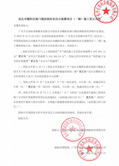 汕头市潮阳区海门镇洪洞村农民公寓楼项目(一期)施工